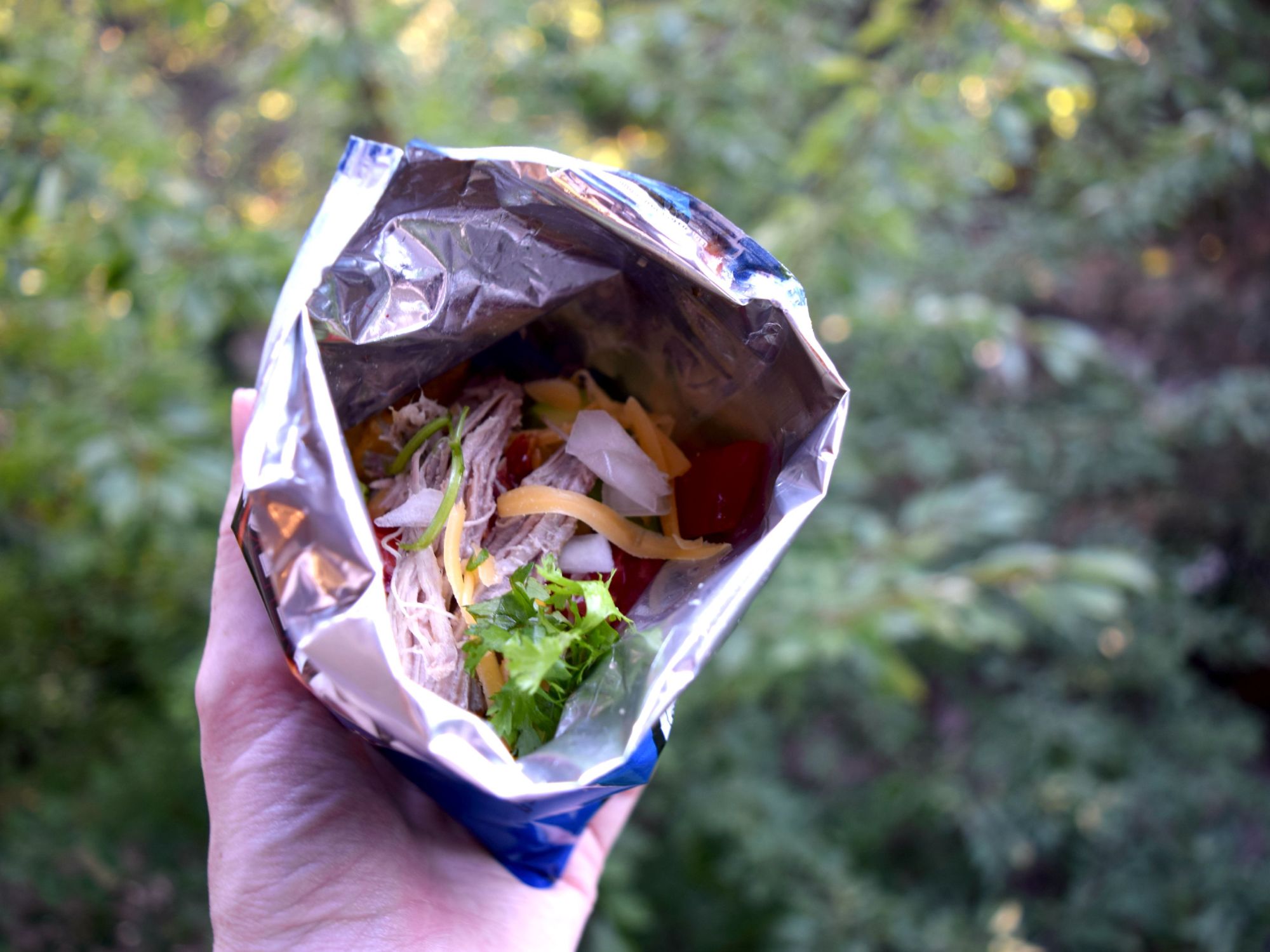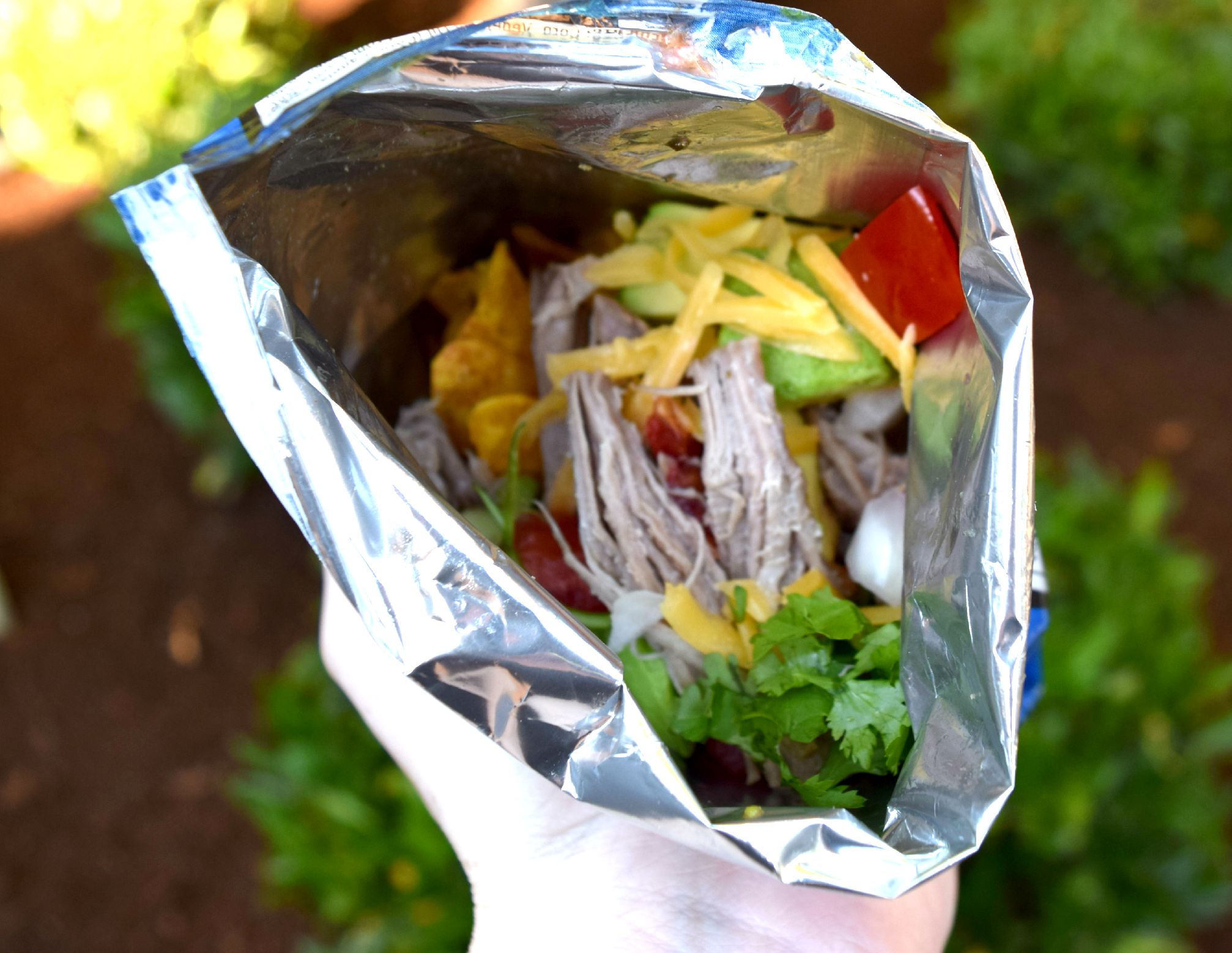 Chop your toppings and let everyone pick their favorites, adding them to their favorite single-serving chip bag along with the shredded pork.